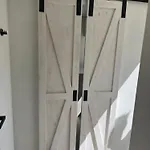 Modern Chalet In De Bossen Van De Veluwe为旅客提供1间卧室. Modern Chalet In De Bossen Van De Veluwe提供1间浴室.它们都设有分开的洗手间 和淋浴.